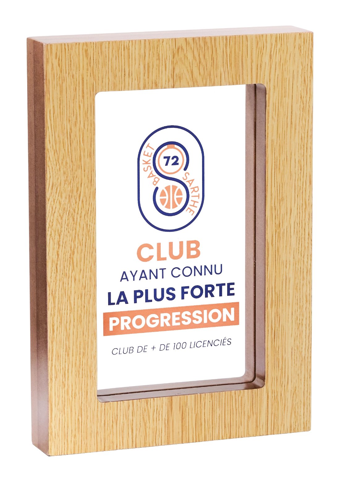 Trophées modernes combinant une structure en bois naturel et une plaque intérieure en acryglass imprimée. Ce design élégant met en valeur votre logo, texte ou visuel pour créer une récompense originale et professionnelle, idéale pour compétitions, événements, entreprises ou associations.