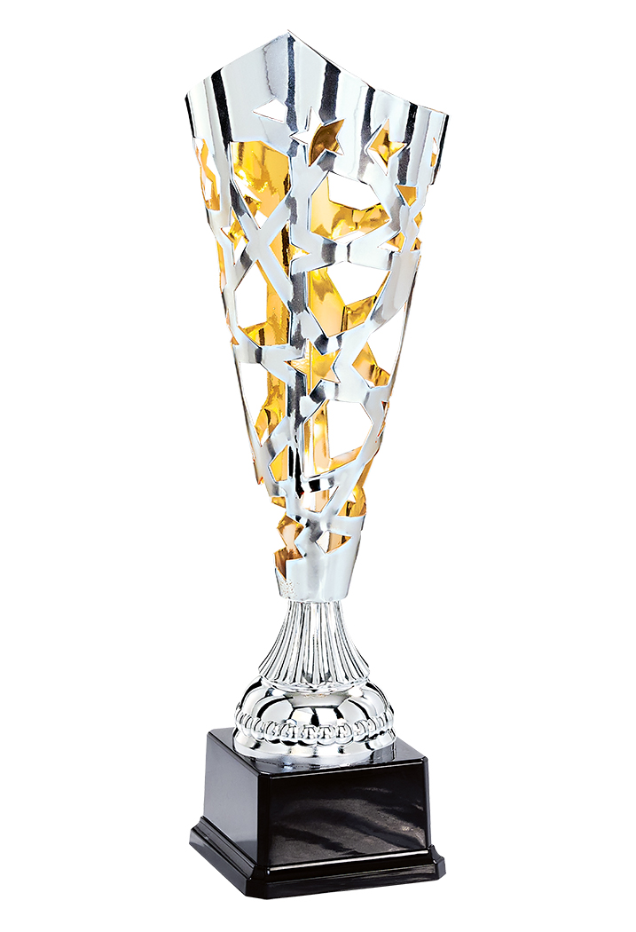 COUPE - 3 Hauteurs : 39cm - 43cm - 46cm - Coupelle laser design en métal - Pied de coupe : ABS métallisé - Base en marbre - Finition : Argent avec intérieur Or