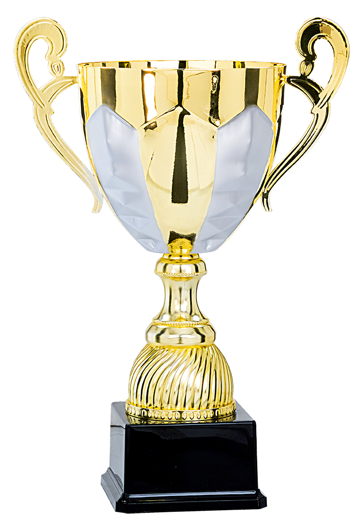 COUPE - 3 Hauteurs : 29cm - 32cm - 36cm - Coupelle avec anses en métal - Inter : ABS - Sous base : ABS métallisé - Base en ABS noir vernis - Finition : Or & Argent Mat