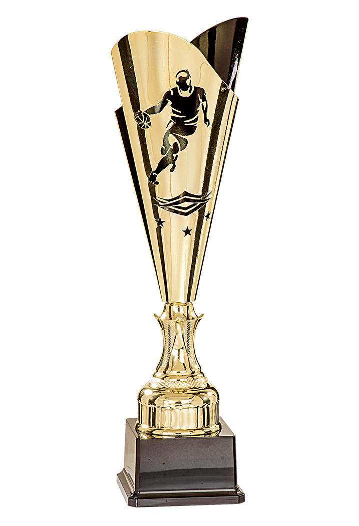COUPE - 1 Hauteur : 43 cm - - Coupelle en méta laser design Badmington - Pied & Inter : ABS métallisé - Base en ABS noir - Finition : Or & Noir