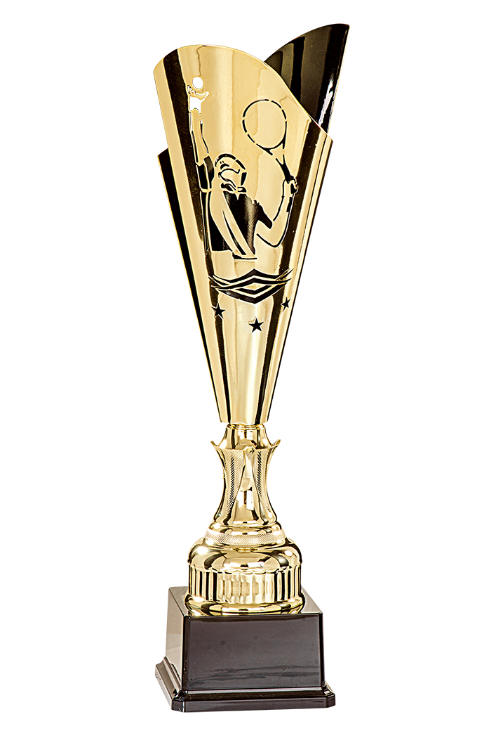 COUPE - 1 Hauteur : 44 cm - - Coupelle en méta laser design Tennis - Pied & Inter : ABS métallisé - Base en ABS noir - Finition : Or & Noir
