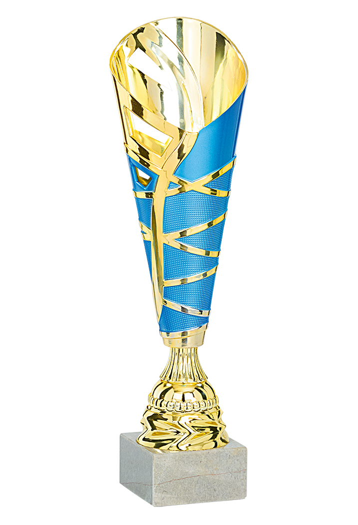 COUPE - 3 Hauteurs : 33cm - 35cm – 37cm - Coupe : Matière synthétique - Base en marbre - Finition : Or & Bleu