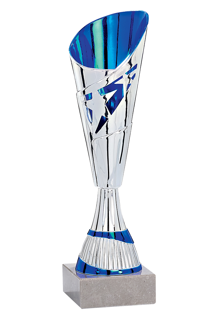 COUPE - 3 Hauteurs : 26 cm - 28 cm - 30 cm - Coupe : Matière synthétique - Base en marbre - Finition : Argent et Bleu