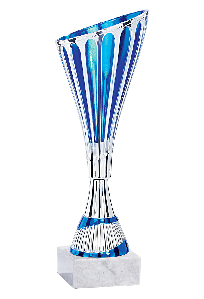 COUPE - 3 Hauteurs : 27 cm - 29 cm - 32 cm - Coupe : Matière synthétique - Base en marbre - Finition : Argent et Bleu