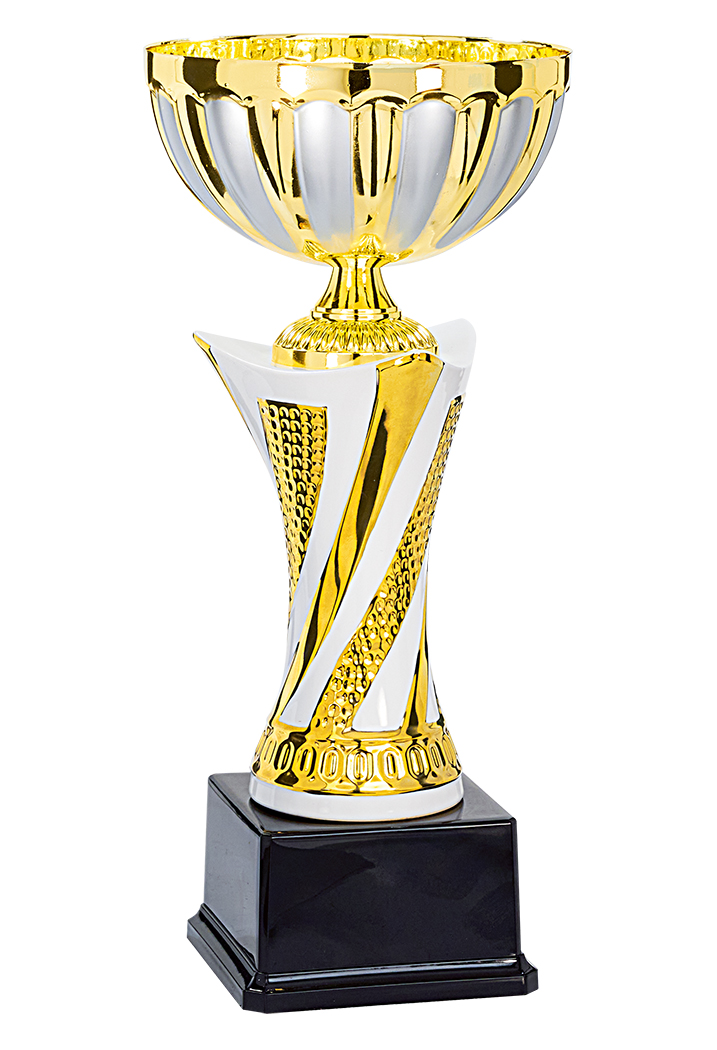 COUPE - 4 Hauteurs : 27cm - 30cm - 34cm - 40cm - Coupelle bicolore en métal - Inter : Céramique Art Design - Base : ABS noir vernis - Finition :Or, Blanc & Argent Mat