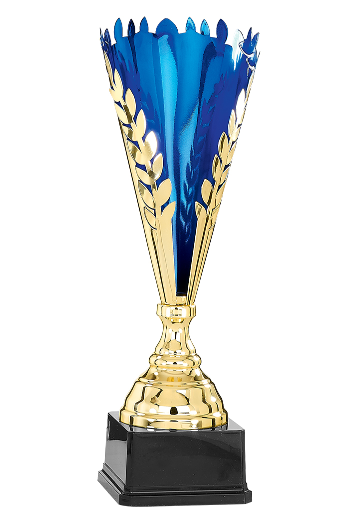 COUPE - 3 Hauteurs : 44cm - 47cm - 53cm - Coupelle laser design en métal - Pied de coupe : Métal - Base : ABS noir vernis - Finition : Or avec intérieur Bleu