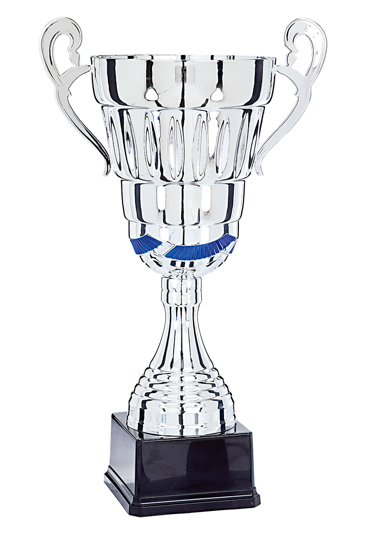 COUPE - 4 Hauteurs : 35 cm - 40 cm - 45 cm - 51 cm - Coupelle et anses en métal - Pied & Inter : Métal - Base en ABS noir vernis - Finition : Argent & Bleu