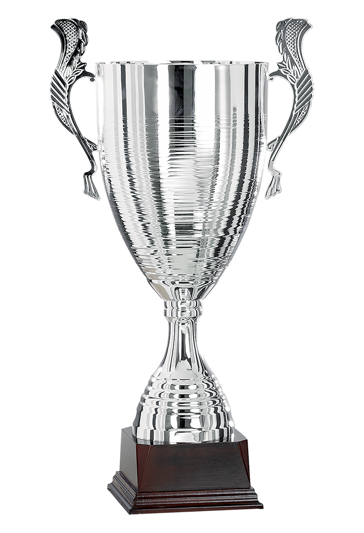COUPE - 4 Hauteurs : 53cm - 56cm - 63cm - 68cm - Coupelle et anses en métal - Pied de coupe en métal - Base : Bois vernis - Finition : Tout Argent