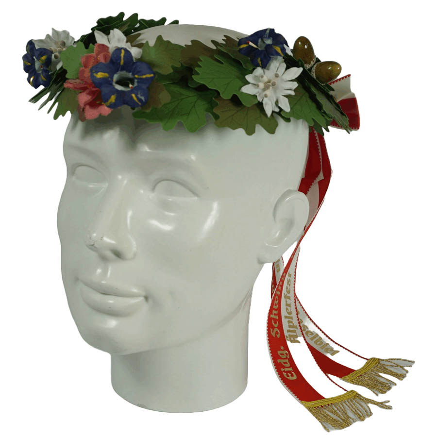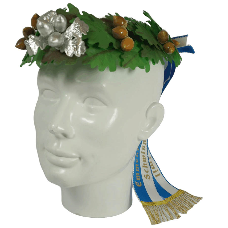 Couronne de tête en chêne, ruban (55 mm) avec impression et franges en or