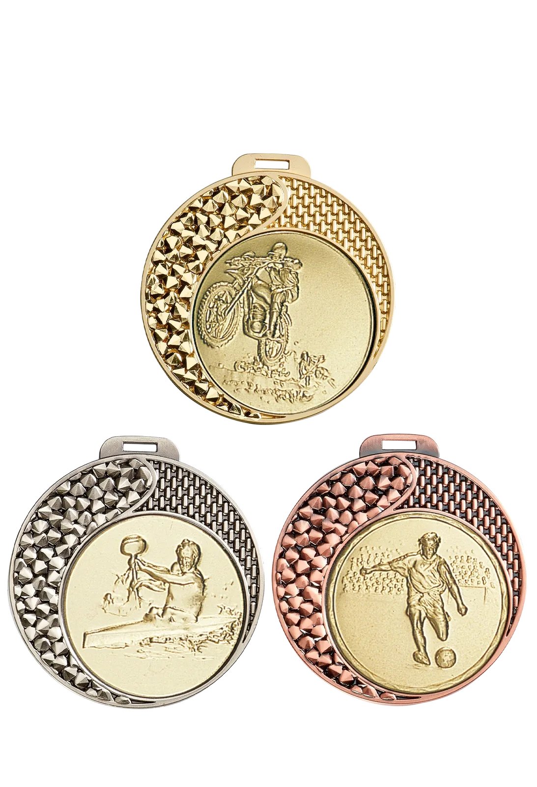 Médaille en métal massif, forme spéciale, diamètre 70 mm, avec emplacement pour pastille de 50 mm. Ruban et pastille non inclus.