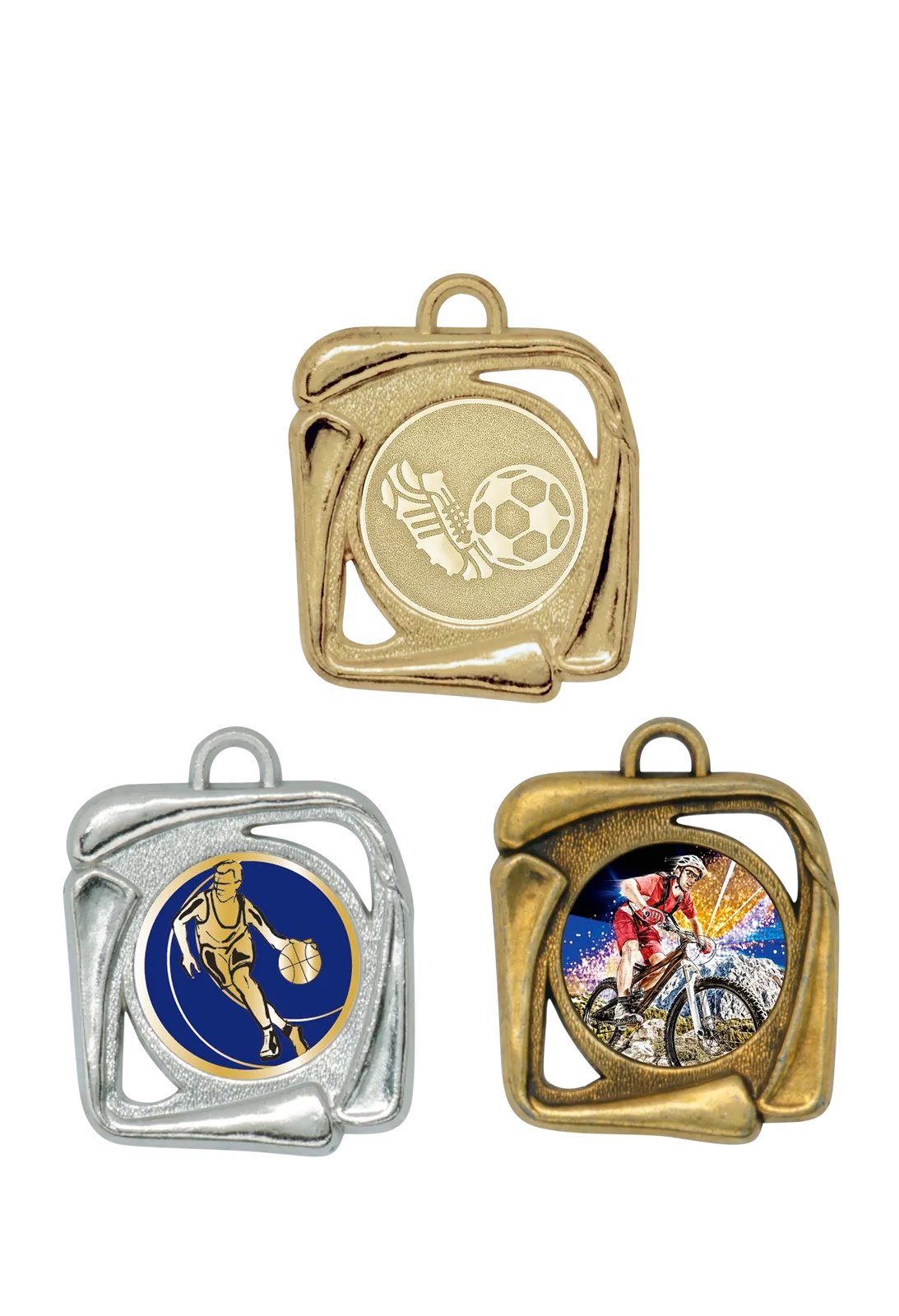 Médaille en métal massif, forme spéciale, diamètre 45 mm, avec emplacement pour pastille de 25 mm. Ruban et pastille non inclus.