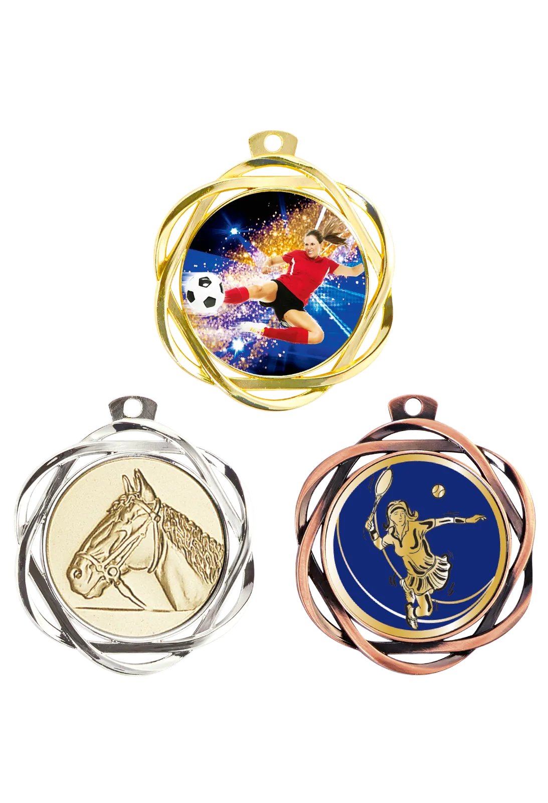 Médaille en métal massif, forme spéciale, diamètre 70 mm, avec emplacement pour pastille de 50 mm. Ruban et pastille non inclus.