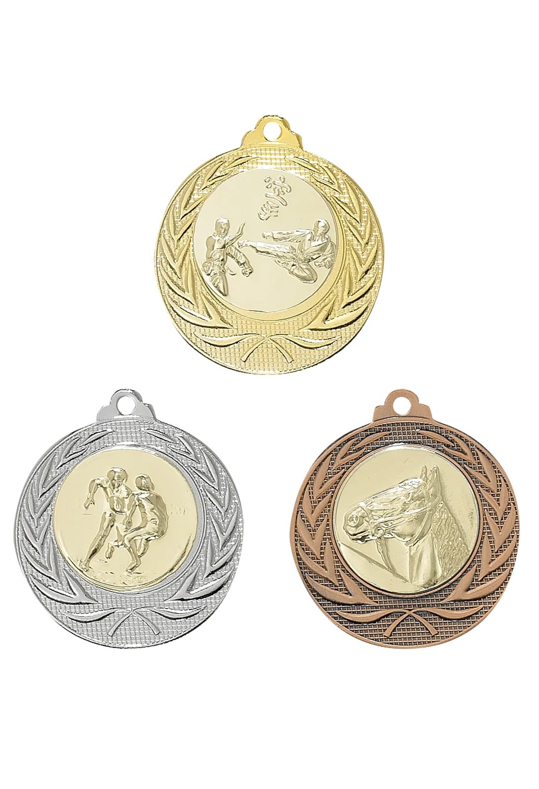 Médaille 40 mm, métal massif, 22 g, épaisseur 3 mm, or / argent / bronze, emplacement pour pastille 25 mm. Pastille et ruban non inclus.