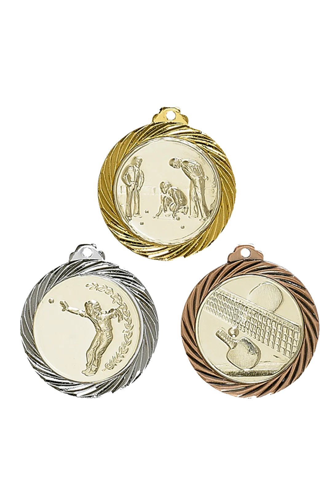 Médaille 32 mm, métal massif, 12 g, épaisseur 3 mm, or / argent / bronze, emplacement pour pastille 25 mm. Pastille et ruban non inclus.