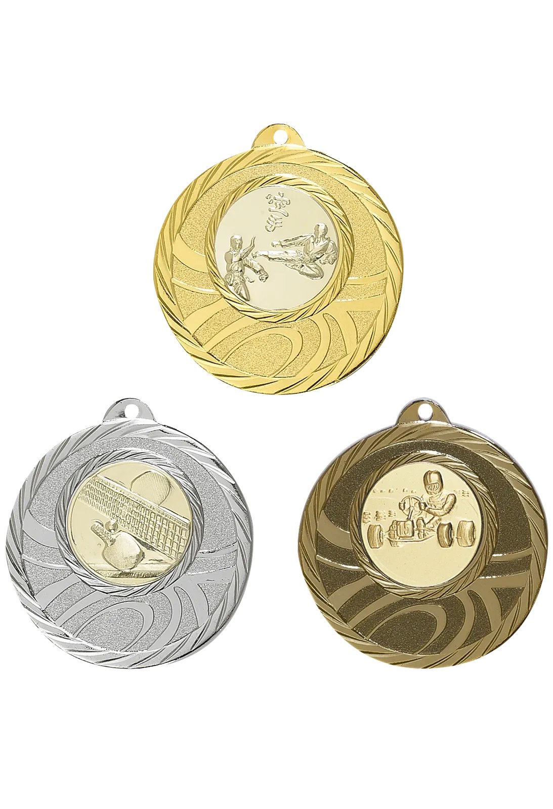 Médaille 50 mm en métal massif, poids 38 g, épaisseur 3 mm, disponible en or, argent ou bronze, avec emplacement pour pastille de 25 mm. Pastille et ruban non inclus.