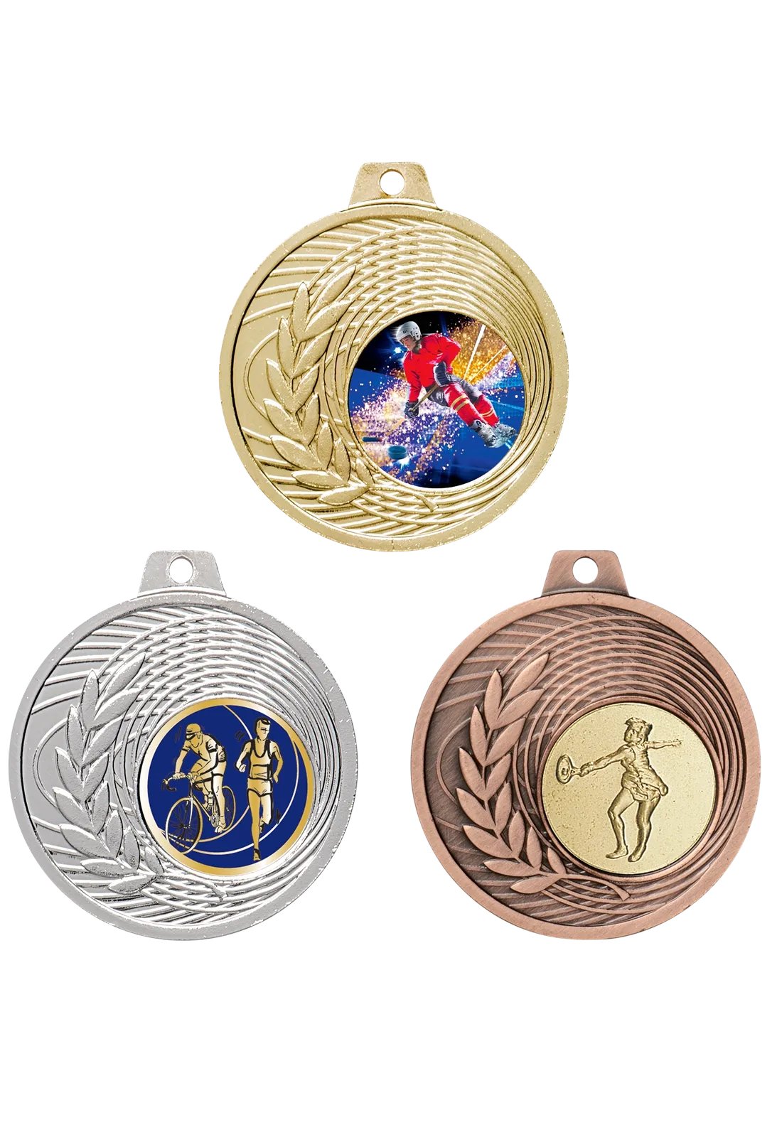 Médaille 50 mm en métal massif, poids 38 g, épaisseur 3 mm, disponible en or, argent ou bronze, avec emplacement pour pastille de 25 mm. Pastille et ruban non inclus.