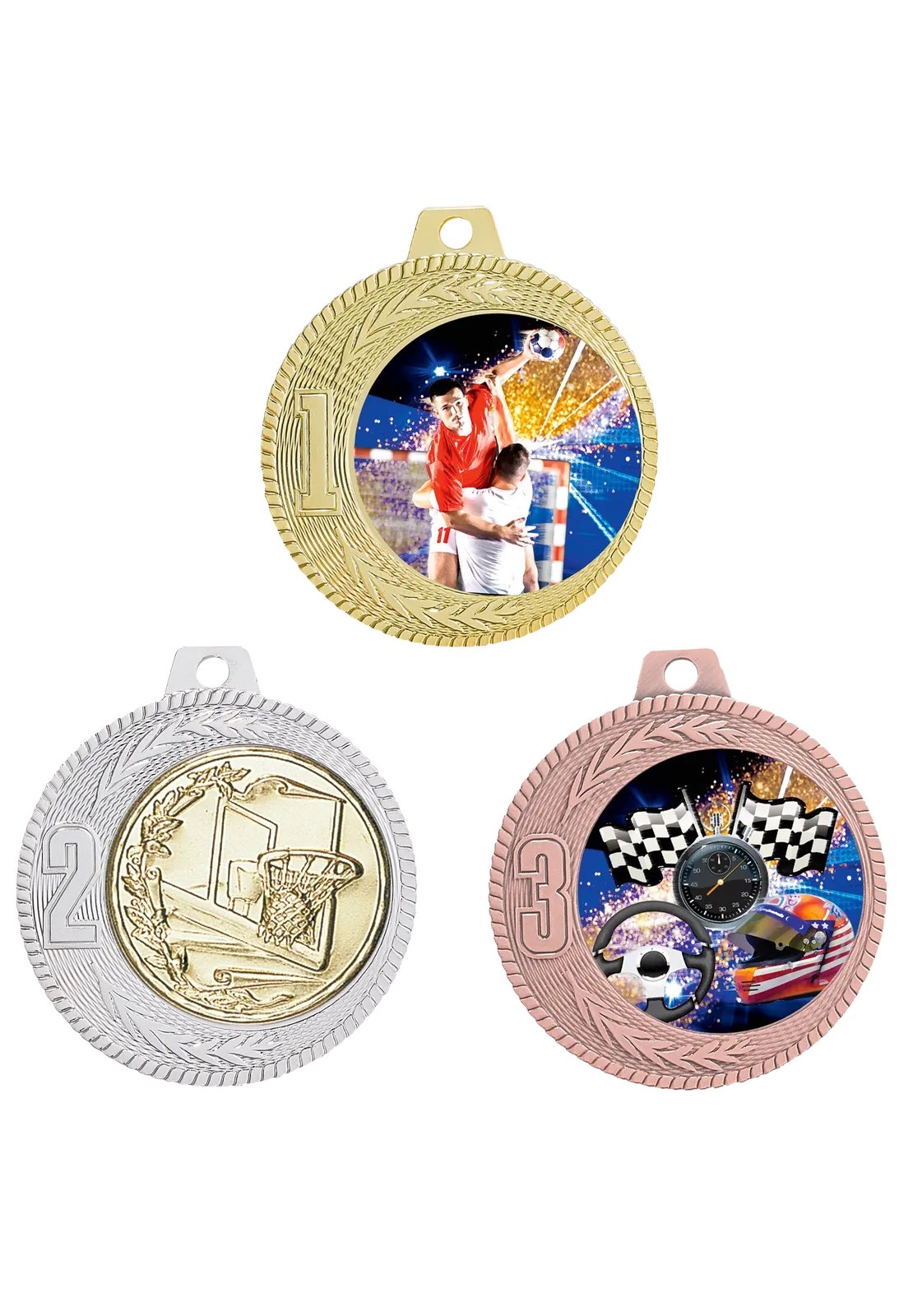 Médaille 70 mm en métal massif, poids 94 g, épaisseur 3 mm, disponible en or, argent ou bronze, avec emplacement pour pastille de 50 mm. Pastille et ruban non inclus.