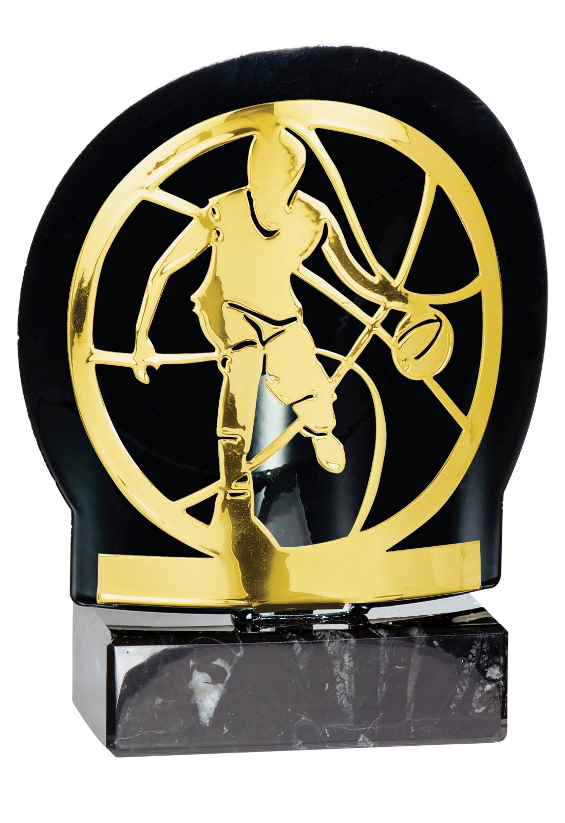 Trophée sportif en métal – Série FX Trophées sportifs en métal représentant différentes disciplines, parfaits pour tournois, compétitions et remises de prix. Design moderne avec motif découpé et finition dorée monté sur colonne avec socle stable pour une présentation élégante. Hauteur : 18 cm Série : FX Personnalisation possible avec plaquette gravée.