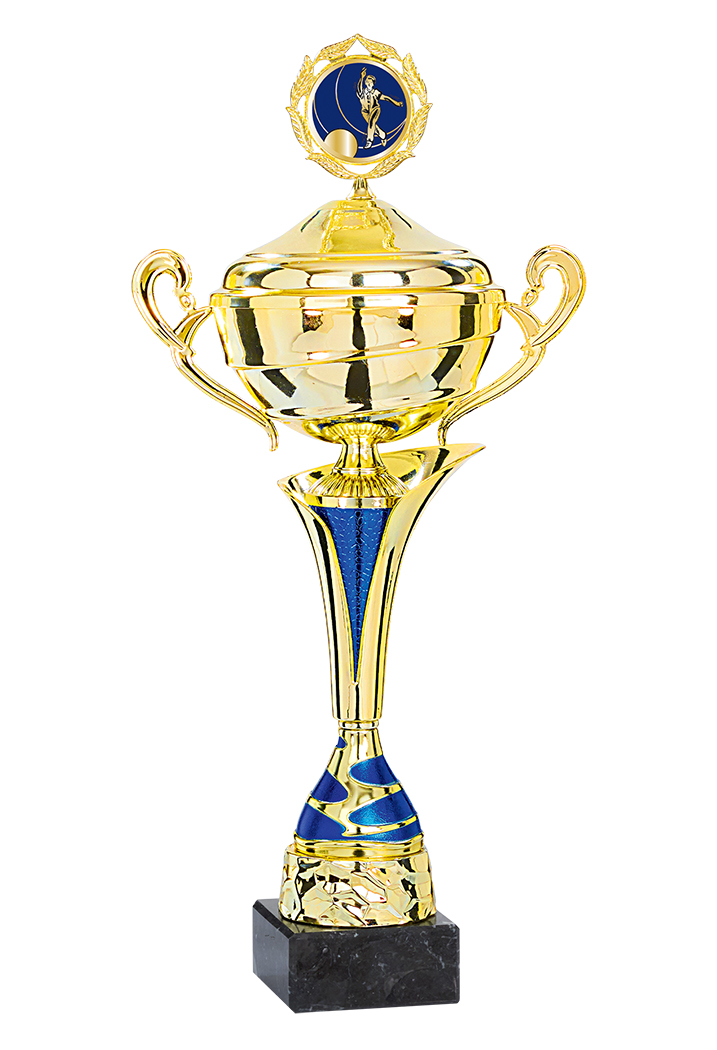 COUPE - 4 Hauteurs : 39cm - 43cm - 46cm - 54cm - Coupelle et anses en métal - Couvercle en métal - Pied & Inter : ABS métallisé - Base en marbre - Finition : Or & Bleu - Personnalisation : Choisir votre activité après étape 1 - Grand choix de disciplines