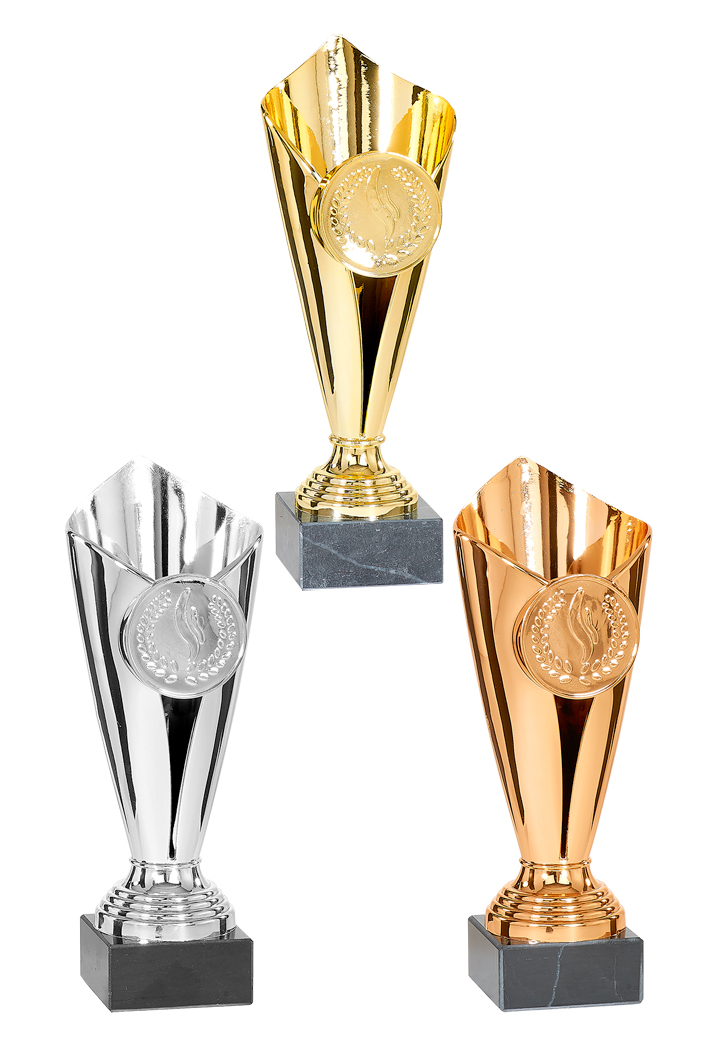 COUPE - Hauteur : 24cm - Coupe : Matière synthétique - Base en marbre - 3 finitions possibles : Or -Argent – Bronze - Personnalisation : Choisir votre activité après étape 1 - Grand choix de disciplines disponibles - Pastille Ø 50mm : collée sans suppléme