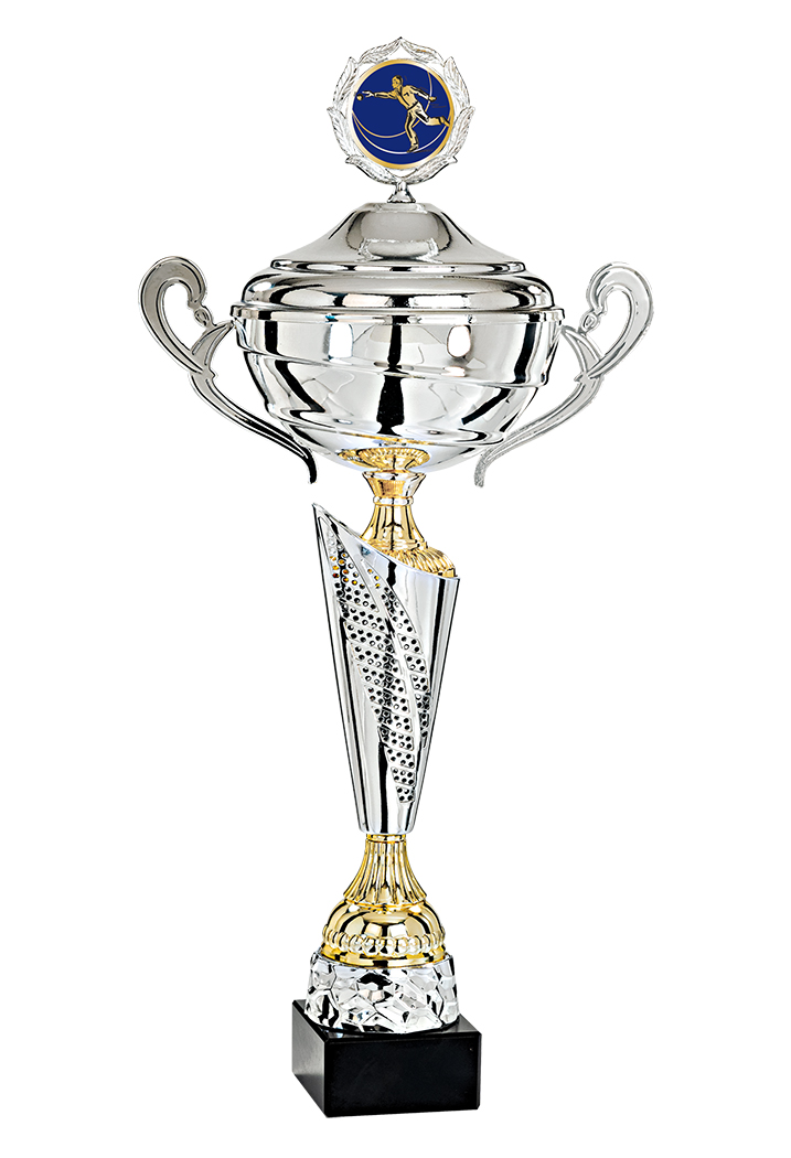 COUPE - 4 Hauteurs : 40cm - 45cm - 50cm - 52cm - Coupelle et anses en métal - Couvercle en métal - Pied & Inter : ABS métallisé - Base en marbre noir - Finition : Argent & Or - Personnalisation : Choisir votre activité après étape 1 - Grand choix de disci