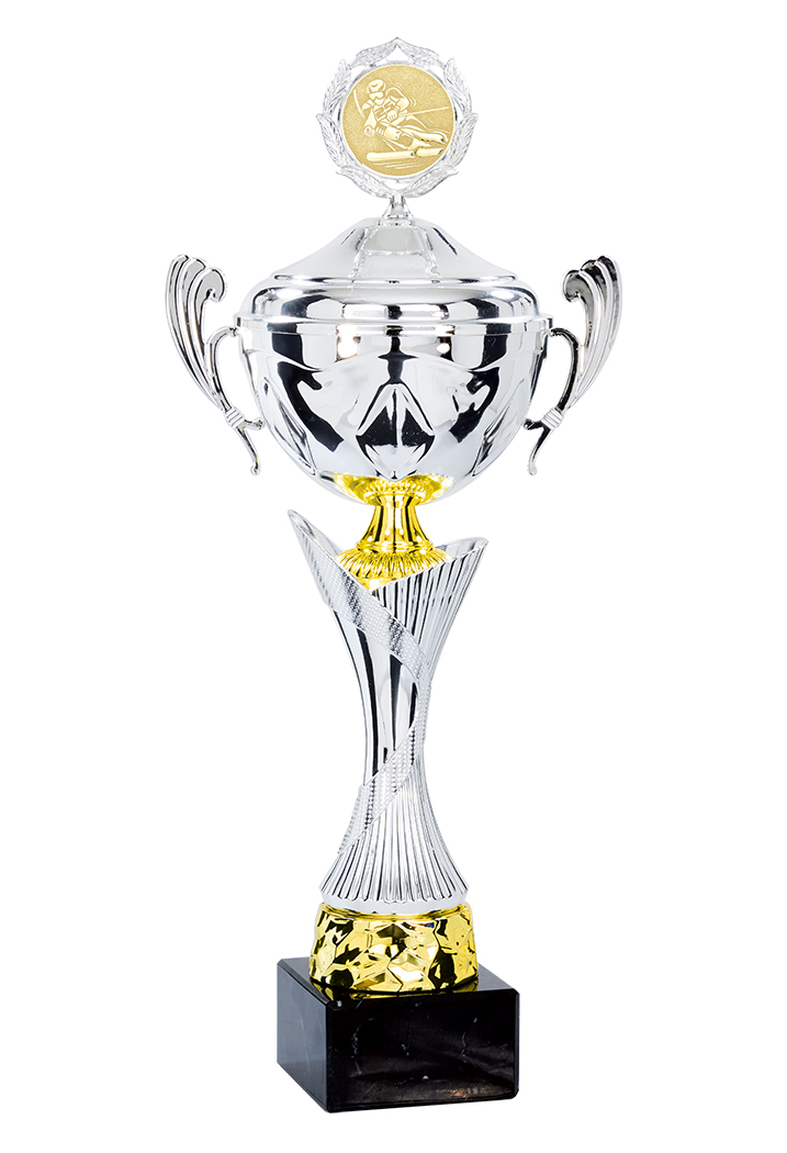 COUPE - 4 Hauteurs : 40cm - 44cm - 47cm - 52cm - Coupelle en métal - Couvercle en métal - Pied & Inter : ABS métallisé - Base en marbre noir - Finition : Argent & Or - Personnalisation : Choisir votre activité après étape 1 - Grand choix de disciplines di