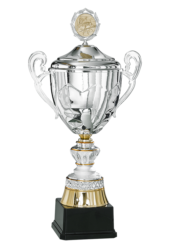 COUPE - 4 Hauteurs : 41cm - 46cm - 50cm - 54cm - Coupelle et anses en métal - Couvercle en métal - Inter : Céramique Art Design - Pied de coupe : ABS métallisé - Base : ABS noir vernis - Finition : Argent & Or - Personnalisation : Choisir votre activité a