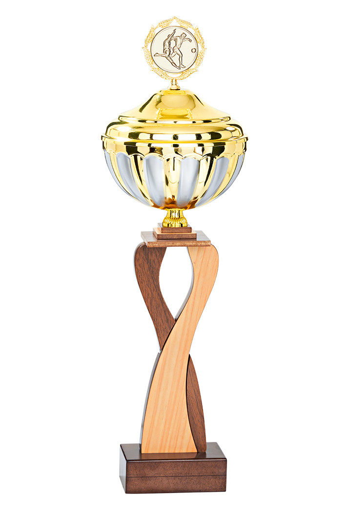 COUPE - 3 Hauteurs : 44cm - 49cm - 56cmCoupelle bicolore en métal - Armature : Bois vernis - Pied & Inter : ABS métallisé - Base : Bois vernis - Finition : Or & Argent Mat - Personnalisation : Choisir votre activité après étape 1 - Grand choix de discipl