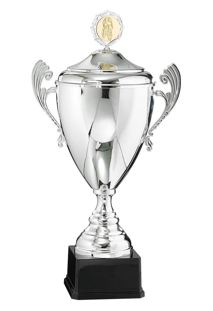 COUPE - 5 Hauteurs : 40cm - 44cm - 49cm - 52cm - 57cm - Coupelle et anses en métal - Couvercle en métal - Pied de coupe en métal - Base : ABS noir vernis - Finition : Tout Argent - Personnalisation : Choisir votre activité après étape 1 - Grand choix de d