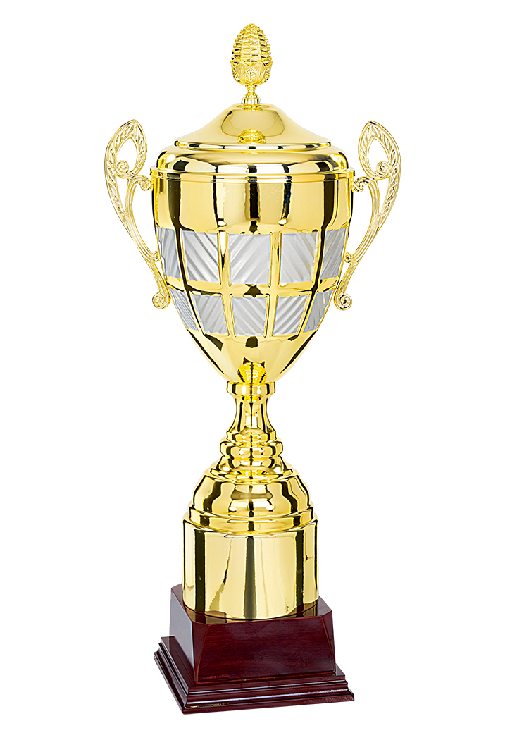 COUPE - 3 Hauteurs : 66cm - 71cm - 77cm - Coupelle avec anses en métal - Couvercle en métalInter & Pied : Métal - Base Bois vernis - Finition : Or & Argent Mat - Personnalisation : Choisir votre activité après étape 1 - Figurine synthétique dorée : Grand