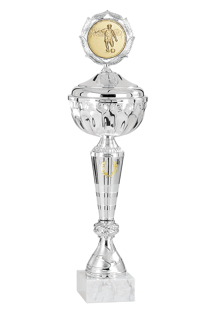 COUPE - 4 Hauteurs : 29cm - 32cm - 34cm - 36cm - Coupelle et Couvercle en métal - Pied & Inter : ABS métallisé - Base en marbre - Finition : Argent avec lauriers dorés - Personnalisation : Choisir votre activité après étape 1 - Grand choix de disciplines