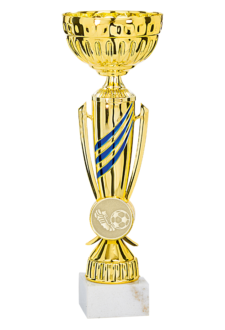 COUPE -1 Hauteurs : 35cm - Coupelle en métal - Pied & Inter : ABS métallisé - Base en marbre - Finition : Or & Bleu - Personnalisation : Choisir votre activité après étape 1 - Grand choix de disciplines disponibles - Pastille Ø 50mm : collée sans suppléme