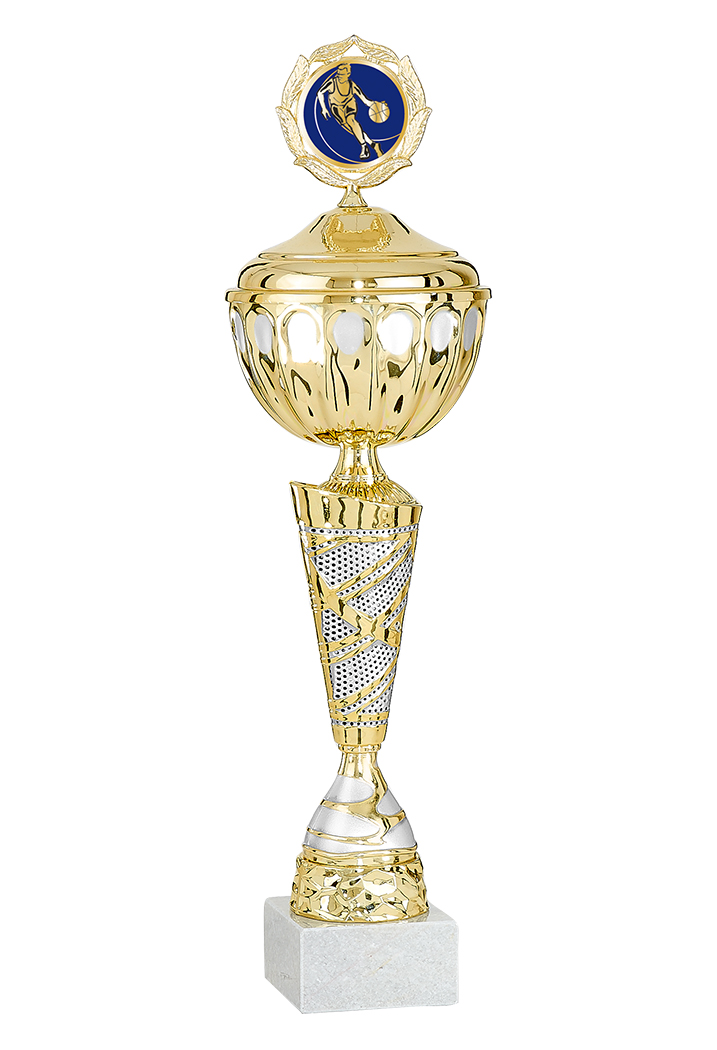 COUPE - 5 Hauteurs : 36cm - 39cm - 44cm - 47cm - 50cm - Coupelle et Couvercle en métal - Pied & Inter : ABS métallisé - Base en marbre - Finition : Or & Argent Mat - Personnalisation : Choisir votre activité après étape 1 - Figurine synthétique dorée : Gr
