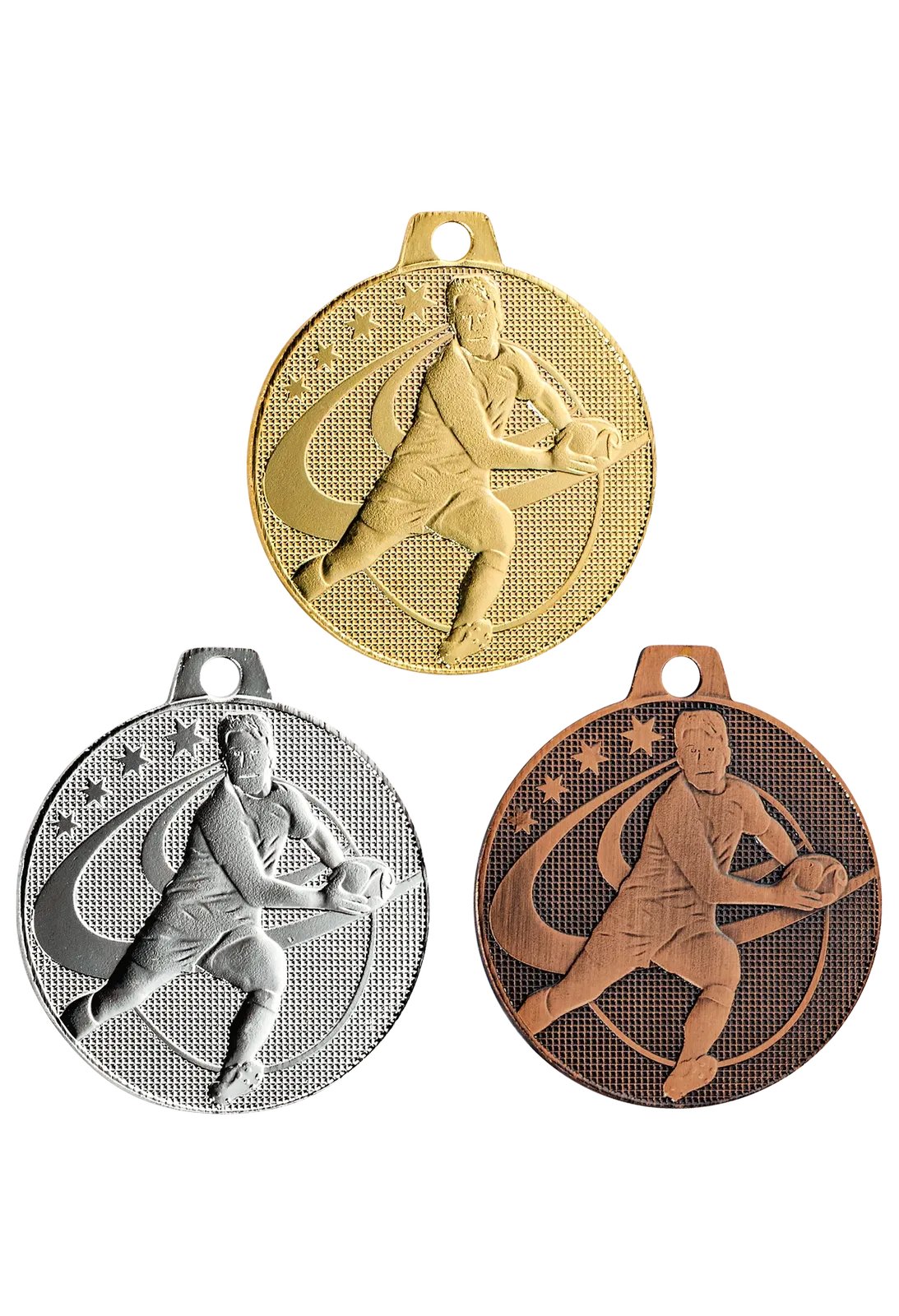 Médaille frappée économique, adaptée aux compétitions sportives et remises de prix, avec motifs sportifs variés. Produit vendu exclusivement par lot de 25 pièces, non divisible. Ruban non inclus.