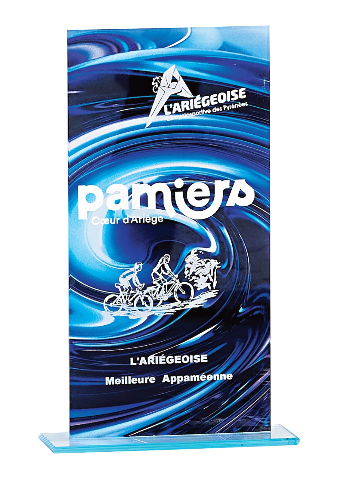 Trophées élégants en verre conçus pour être personnalisés par gravure. Idéals pour récompenses sportives, événements d’entreprise, distinctions ou cérémonies officielles. La gravure permet d’ajouter votre logo, texte ou visuel avec un rendu précis et durable.