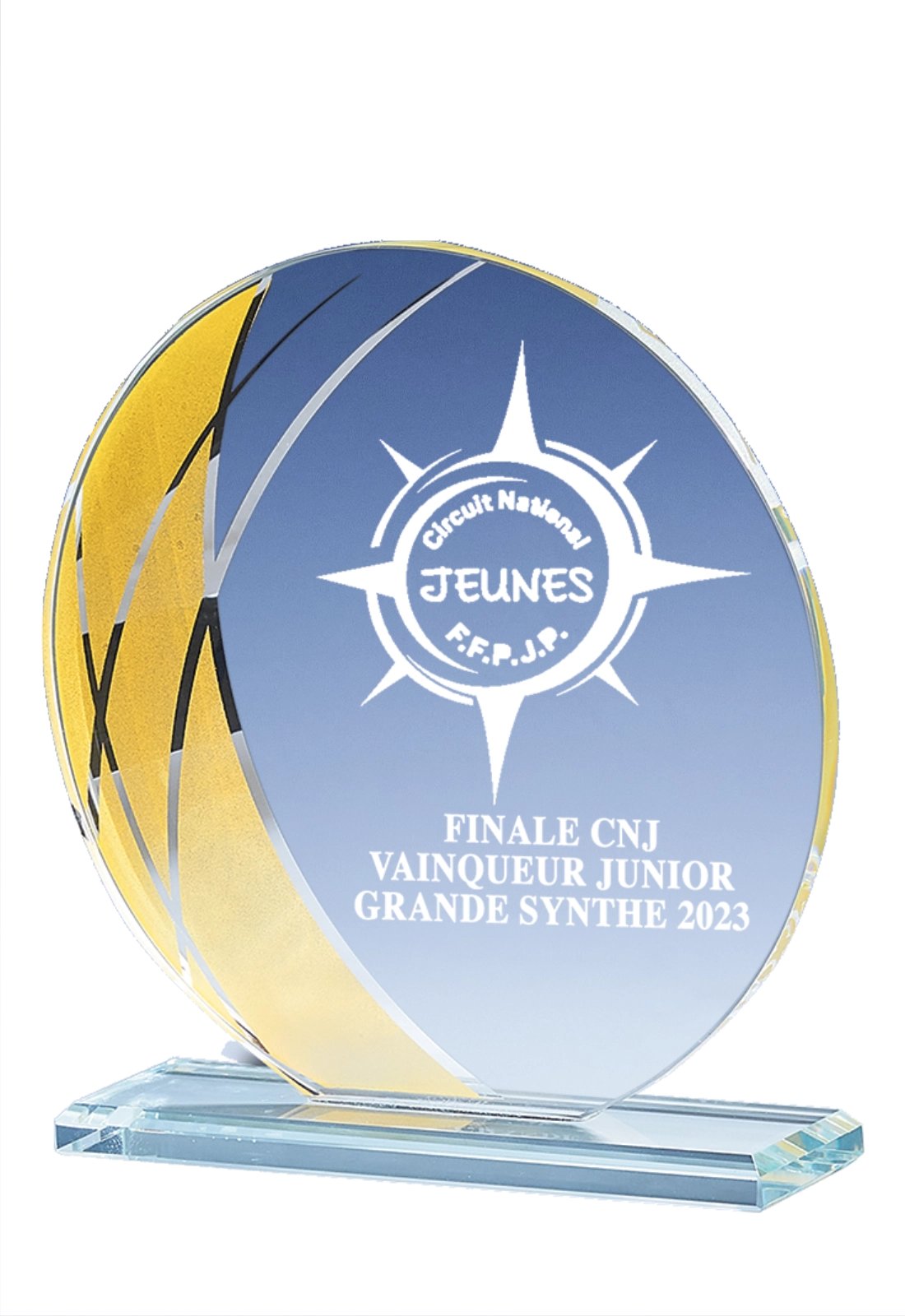 Trophées élégants en verre conçus pour être personnalisés par gravure. Idéals pour récompenses sportives, événements d’entreprise, distinctions ou cérémonies officielles. La gravure permet d’ajouter votre logo, texte ou visuel avec un rendu précis et durable.