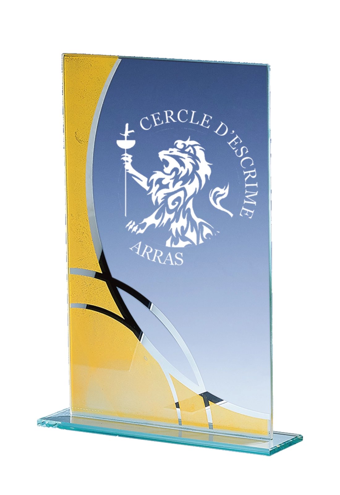 Trophées élégants en verre conçus pour être personnalisés par gravure. Idéals pour récompenses sportives, événements d’entreprise, distinctions ou cérémonies officielles. La gravure permet d’ajouter votre logo, texte ou visuel avec un rendu précis et durable.